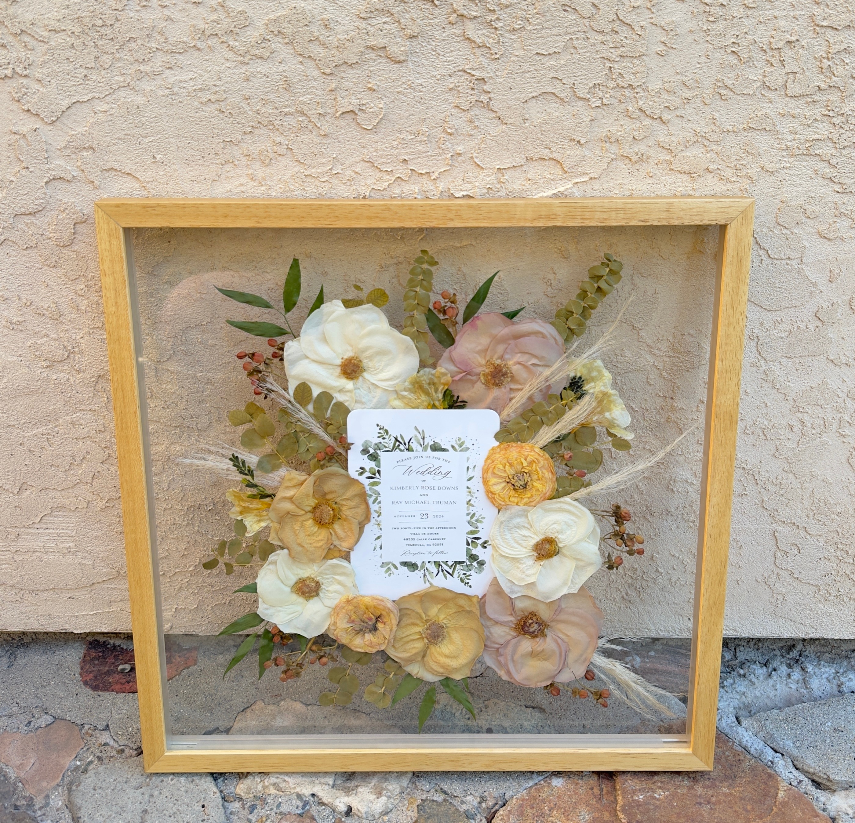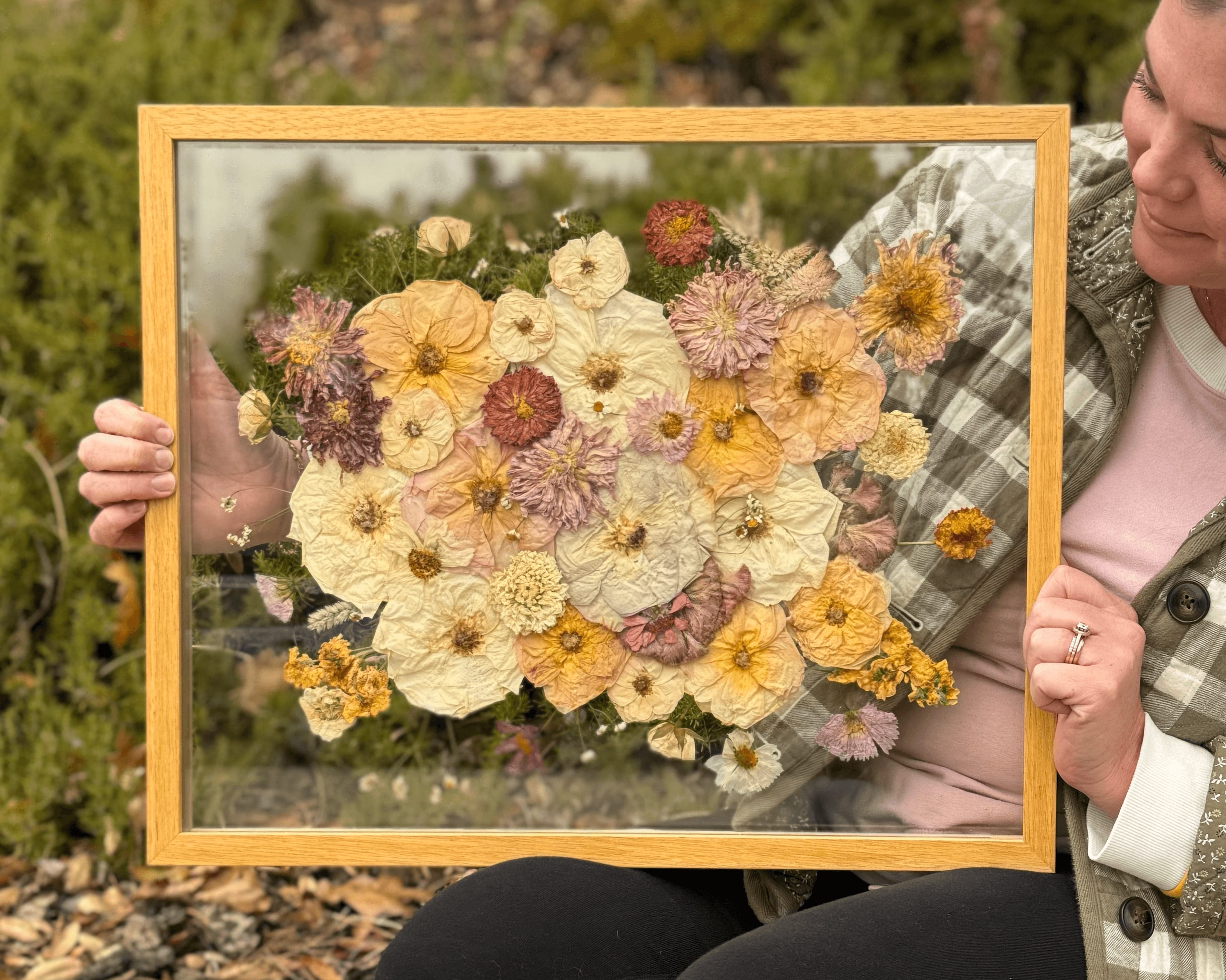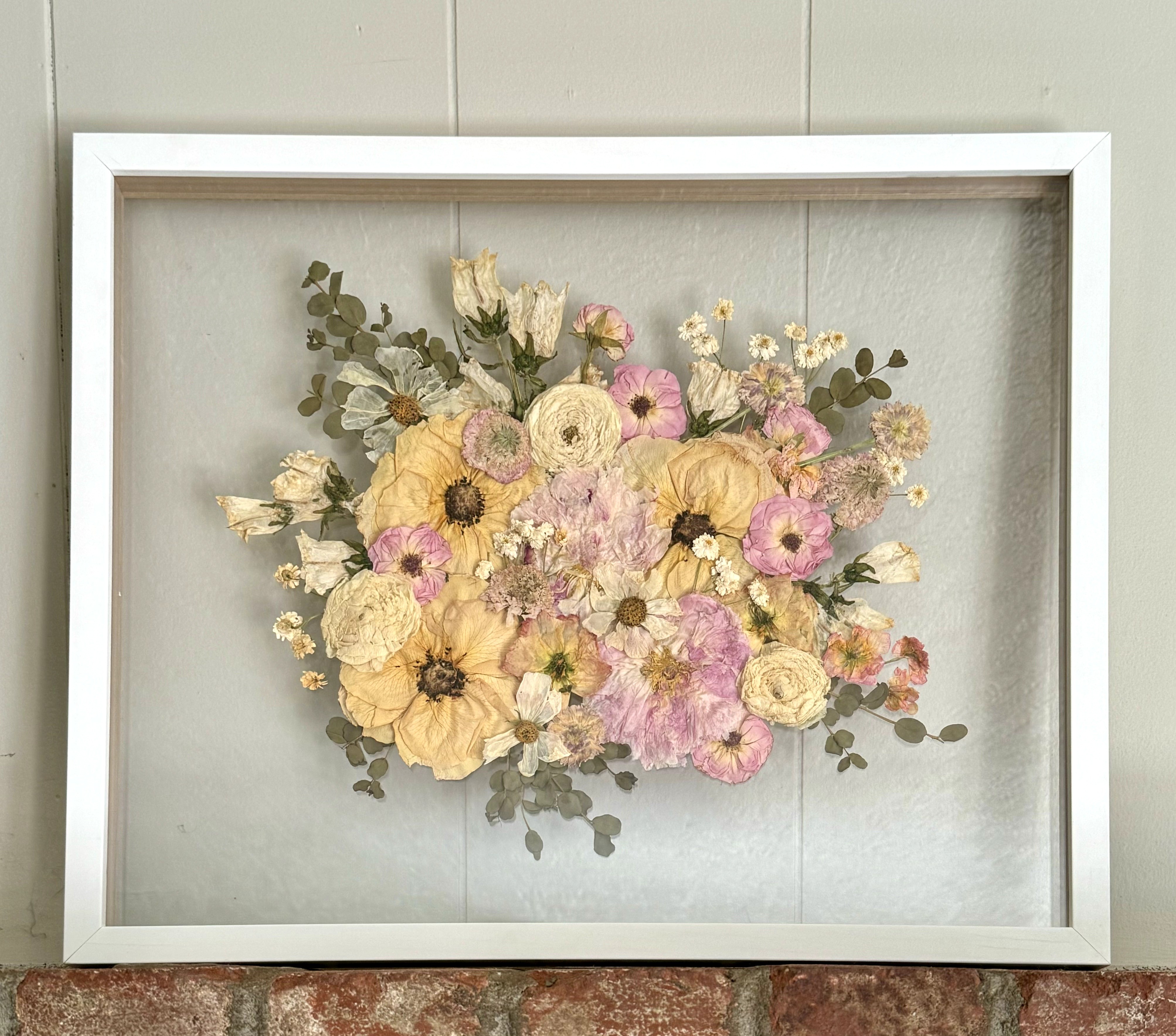 For Keeps offers pressed flower frames in all different shapes and sizes. We also offer to put pressed flowers in custom jewelry and ring dishes. Our process takes up to 12 weeks so there is a lot of care and love that goes in to each piece.