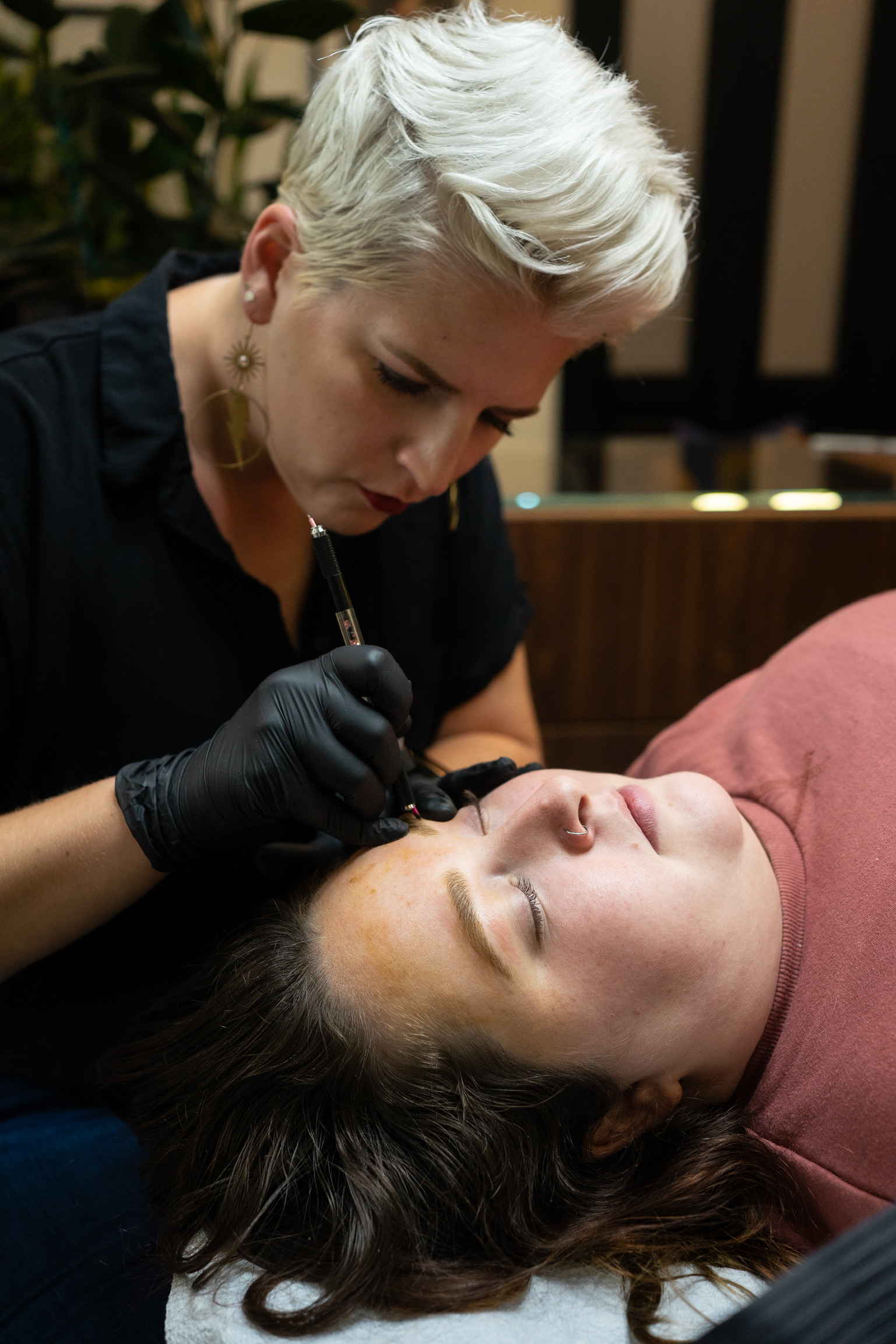 The industry is constantly evolving, and while it’s hard to predict with certainty, I believe we’ll see a resurgence of microblading, more defined powder brows, and richer lipstick tattoos in the future. We’re also seeing an increase in people opting for laser treatments to remove old pigment and refresh their look with new techniques, which I think will continue to be more normalized, and that’s a positive shift. Nano brows are currently trending and marketed as “new,” and the techniques have definitely evolved and improved to where they are currently, but eyebrows done with a machine have always been around. Right now, the focus is on natural, airy brows, but I’ve noticed most clients eventually prefer a more defined, polished brow. I’m hopeful that trend will become more popular and normalized as well.