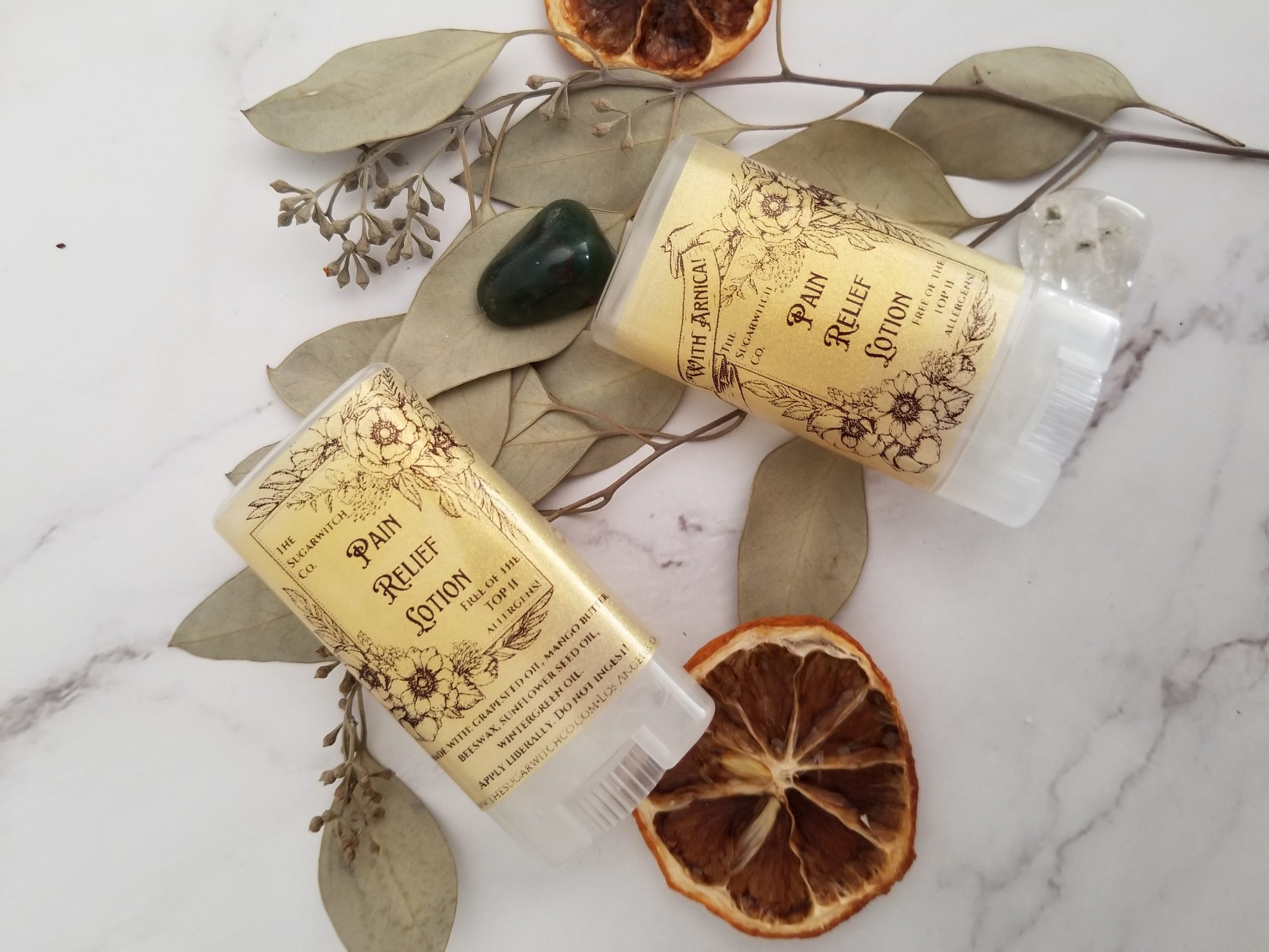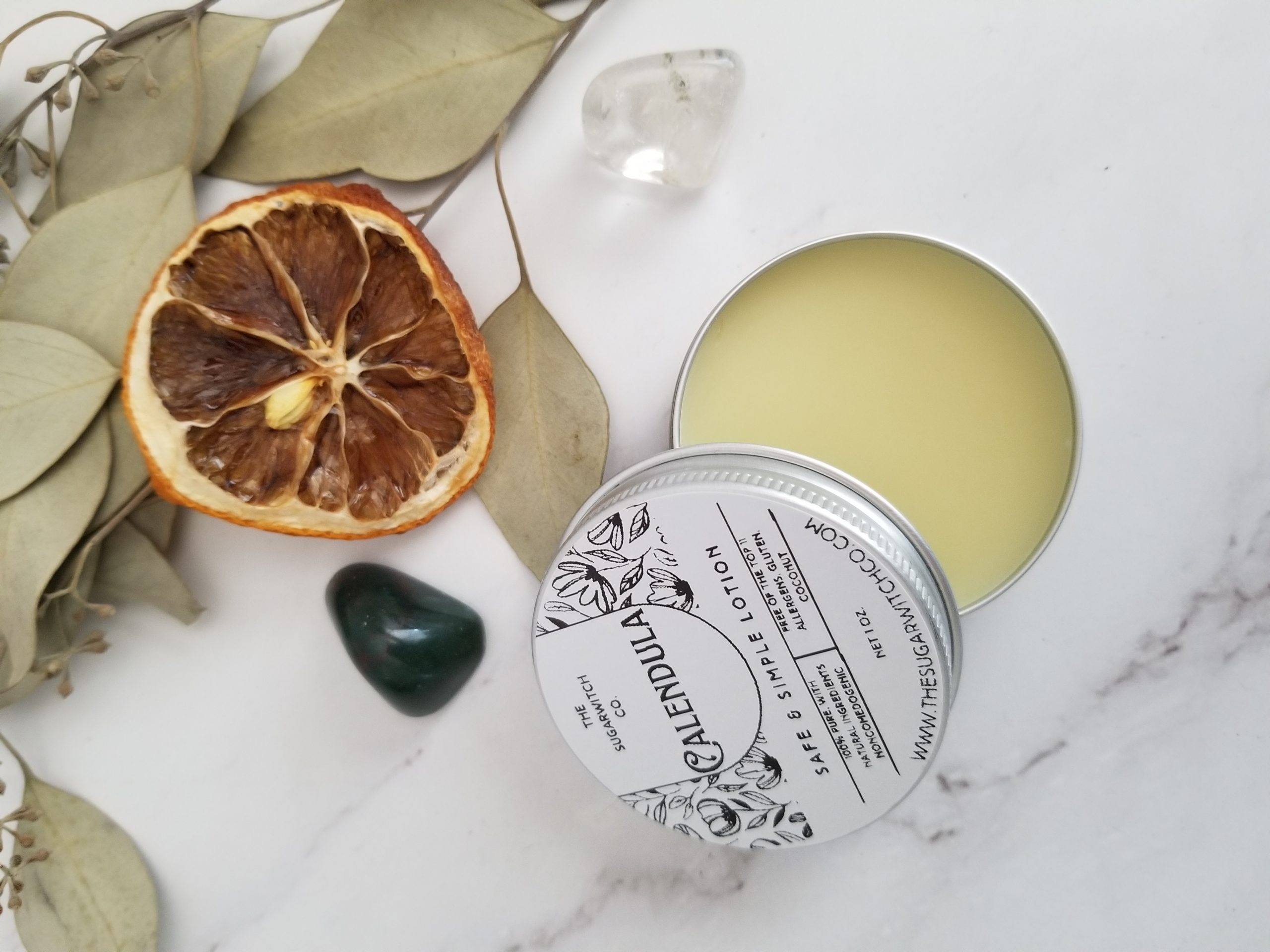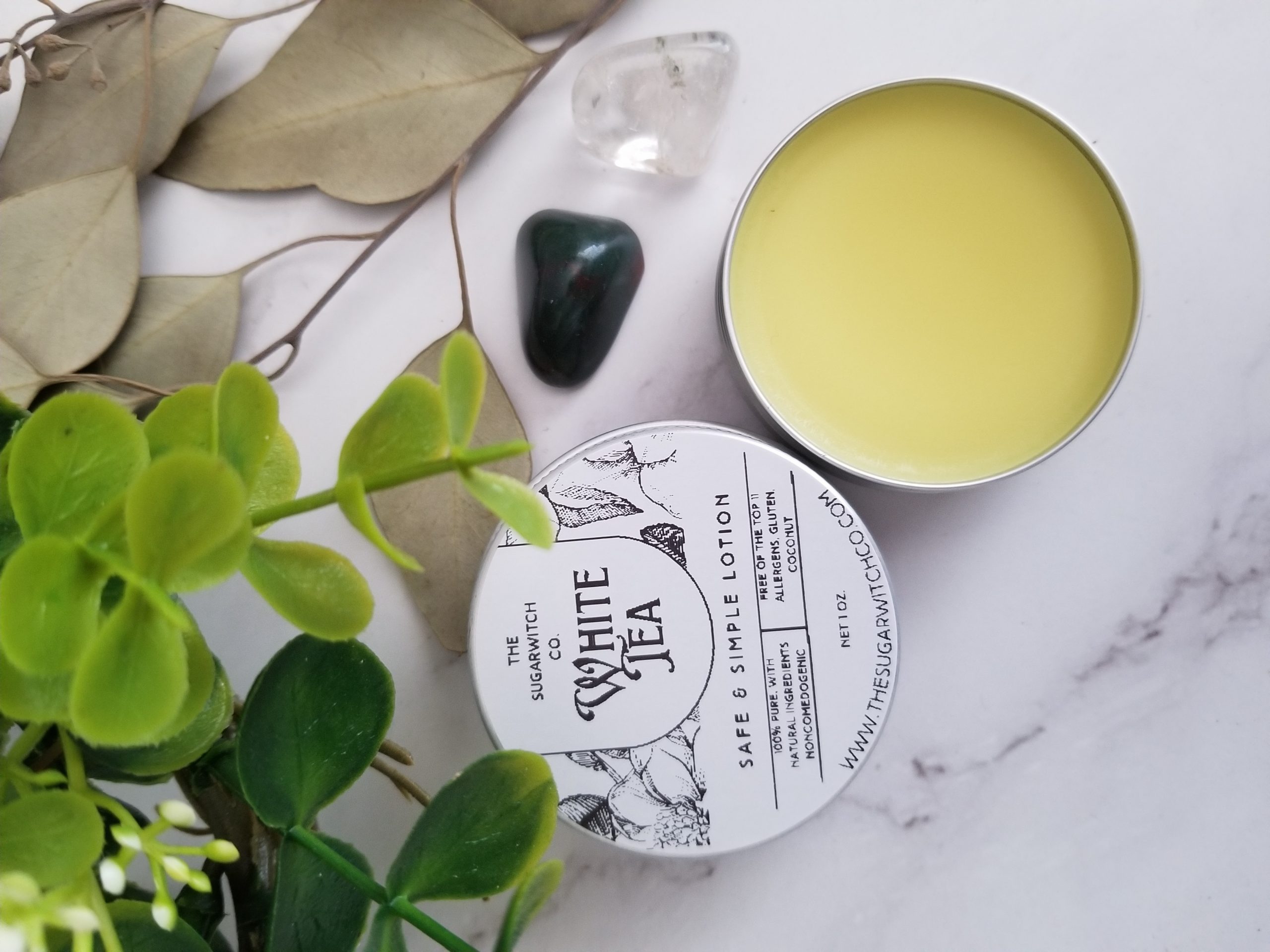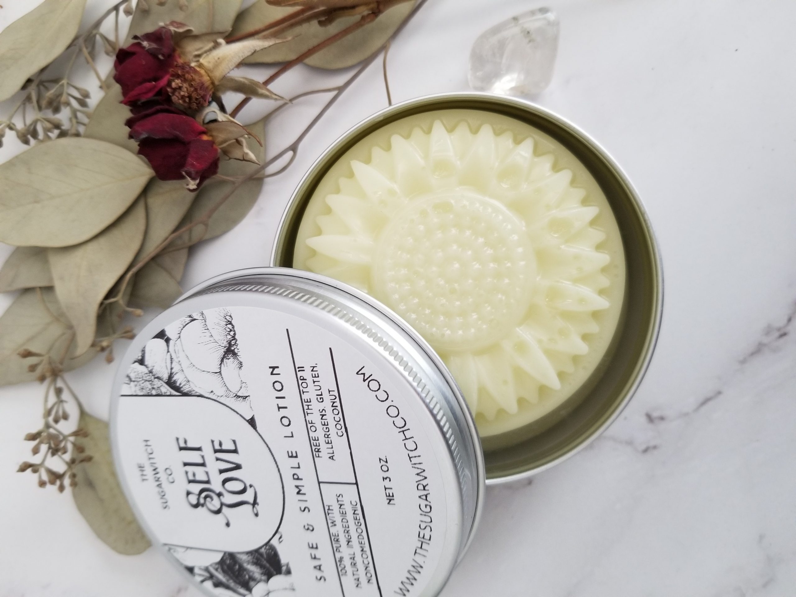 The Sugarwitch Co. proudly presents our top 11 allergen free Safe & Soft Solid Lotion – we have both a large lotion bar version and a smaller salve version, both using the same formula with minimal ingredients and free of gluten, coconut, and the top 11 allergens.