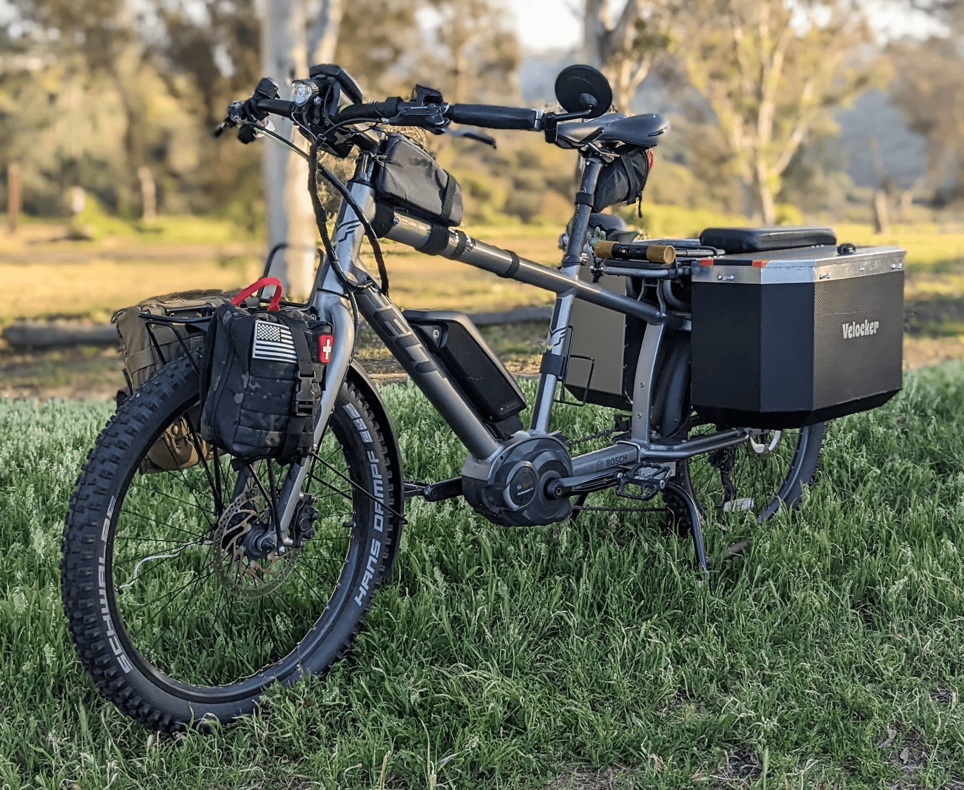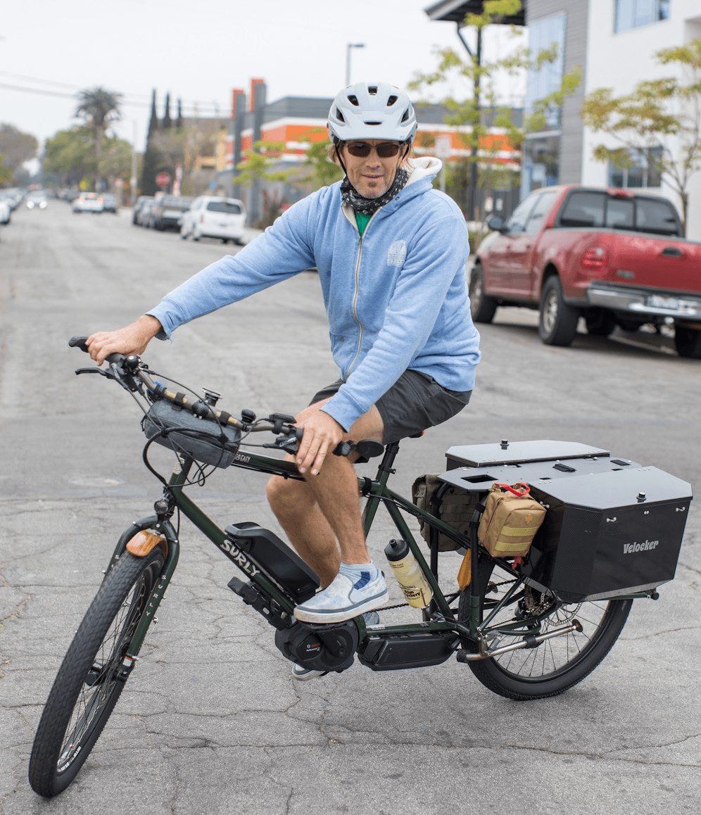 On a typical day, I rode 25-30 miles carrying heavy tools, boat parts, and Doghooks. With the electric assist, the miles and hills were no problem, but carrying and securing everything I needed every day was a big problem. I searched online and in all of the bike shops and found nothing that suited my needs. Then one night I woke up from a dream and roughly drew a locking bicycle cargo case system very similar to what now call a Velocker. To make that dream a reality has been a long, uphill, rough path but we feel that this is an important idea worth sharing.