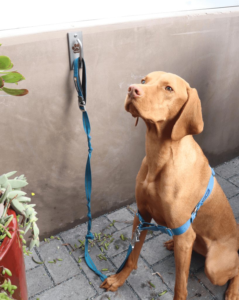 A few years later, my girlfriend and I were out walking in North Park, and we watched a dog tied to a plastic patio chair run out of a cafe into the street in front of a car. As long-time dog owners who take our dogs everywhere, we got to thinking. How cool would it be if dog-friendly restaurants had a way to safely secure dogs so their owners could relax and eat with both hands-free?