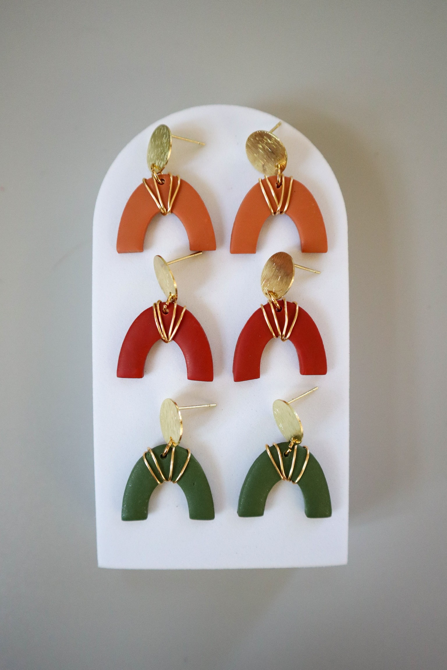 I have always been a creative person! I actually had a photography business for about 8 years, which is where I found my confidence in expressing myself. A Way of Handmade was created, though, during the pandemic, like many other new small businesses. A week before the pandemic official started, I had friends in town. We had seen clay earrings on Instagram and decided to have a girls’ night and make our own. After that, I was hooked! I tried to research more about technique and tools but was limited then. I had to learn trial by error. Throughout 2020, as I starting to feel more confident about my earrings, I would post them on my personal Instagram stories and sell them. My neighborhood was putting together a little craft fair towards the end of 2020. My boyfriend (now husband) encouraged me to join. Thank goodness for those people to push you to go outside of your comfort zone. I sold out that day!