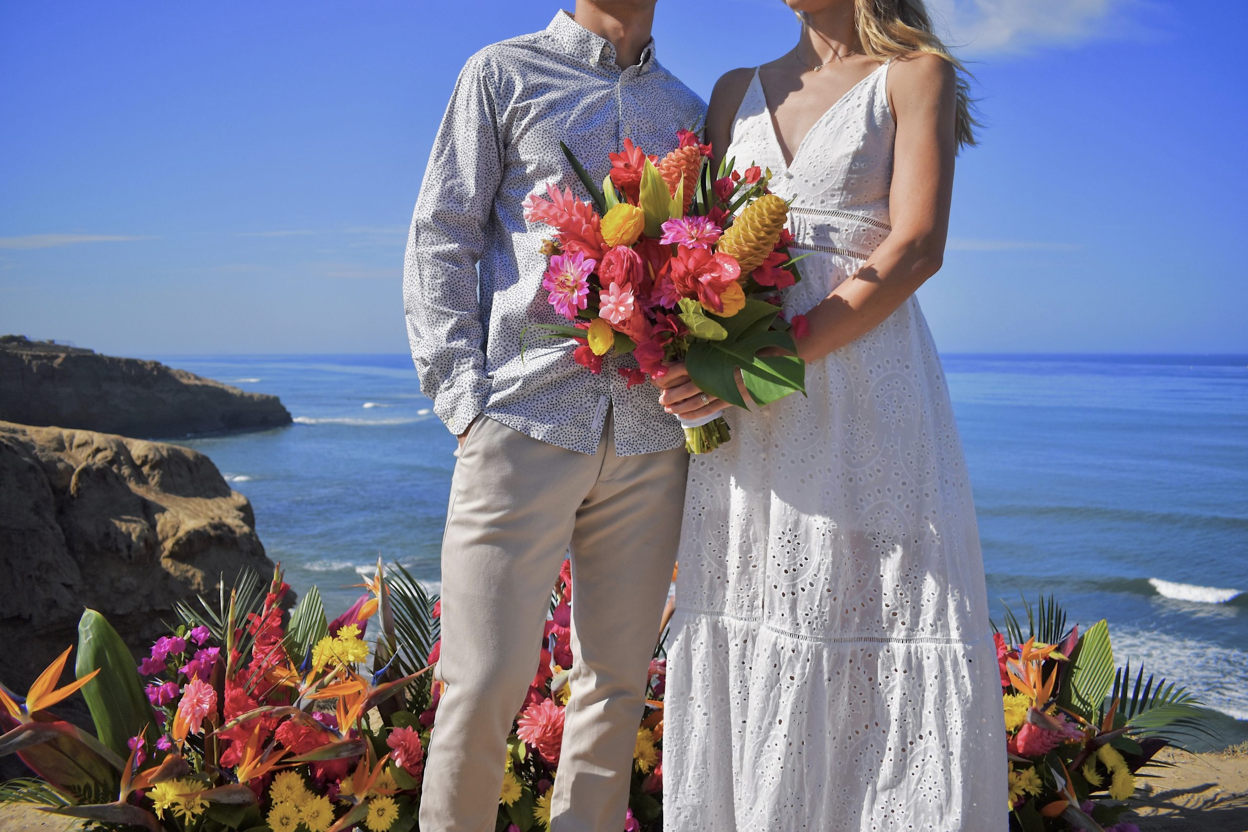 I launched Radiant Blooms in 2022, staring with a colorful, vibrant wedding in liberty station. I’ll celebrate three years this February and still pinch myself that I am designing flowers as my job. I am a full service “celebration” florist, catering to weddings and events. Throughout my time as a wedding and event florist I have specialized in tropical flowers. My style is not limited to tropical blooms, but they are a personal favorite and I use them in almost all of my arrangements.