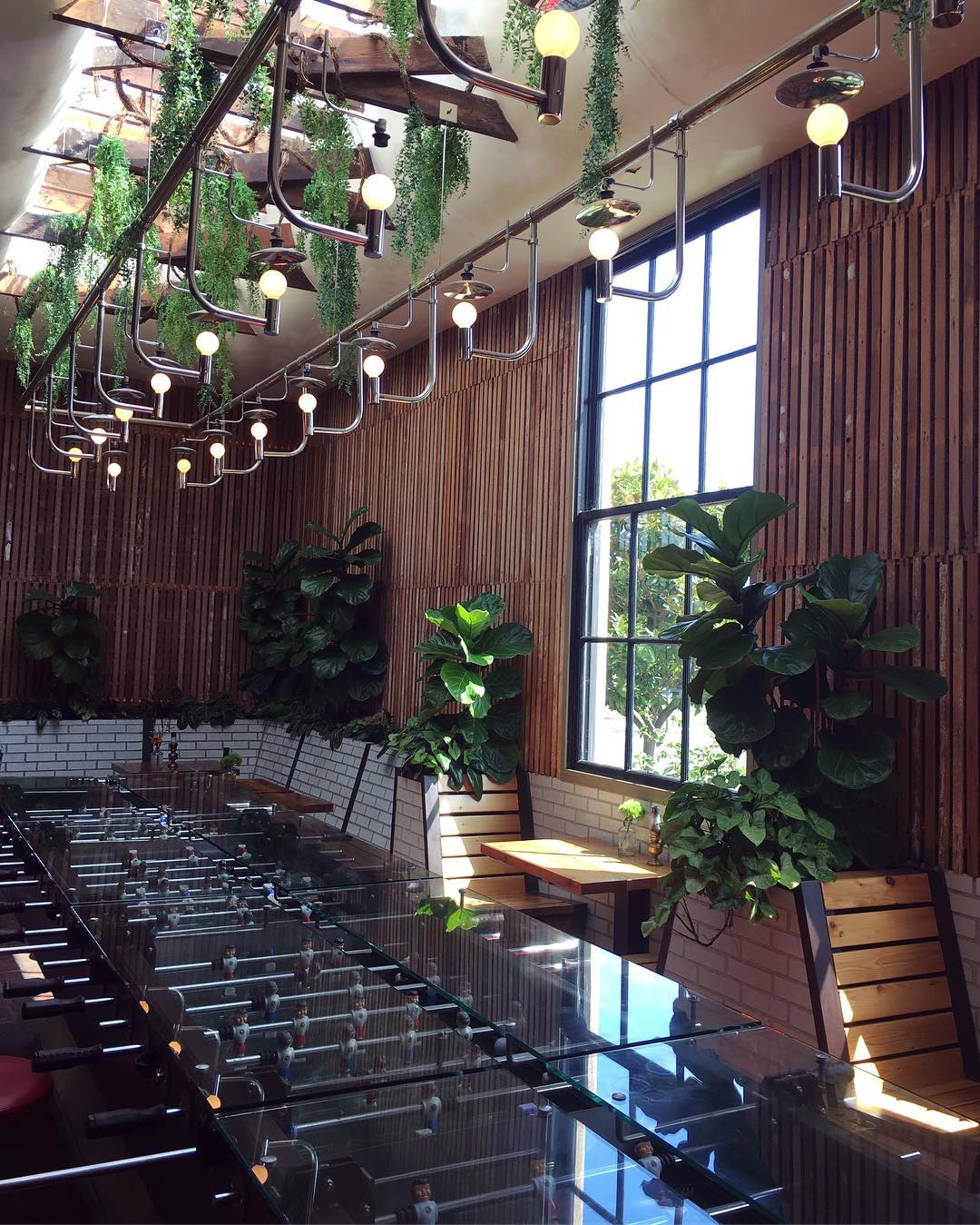 - Love their wooden benches, red stools and beautiful succulents throughout the space