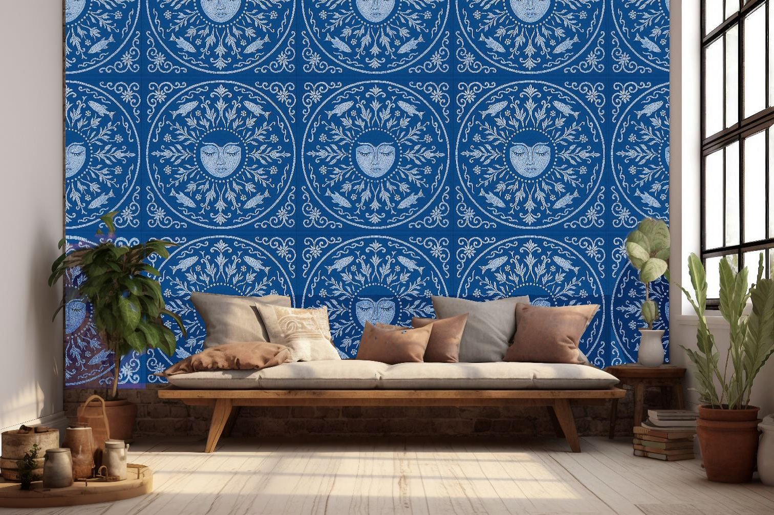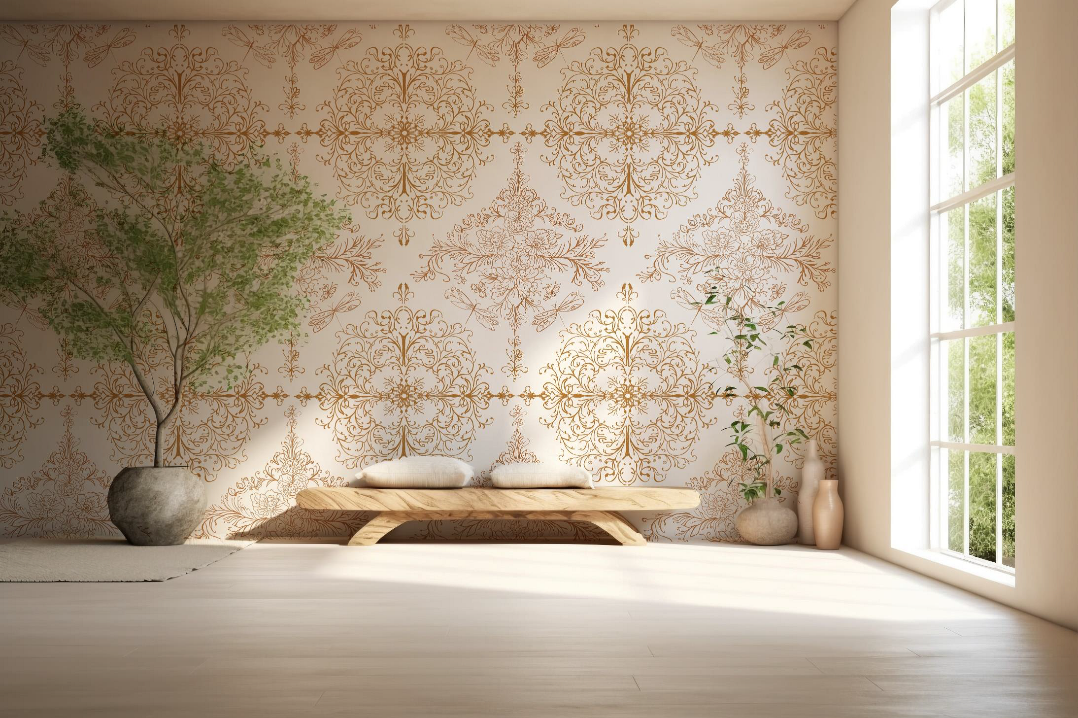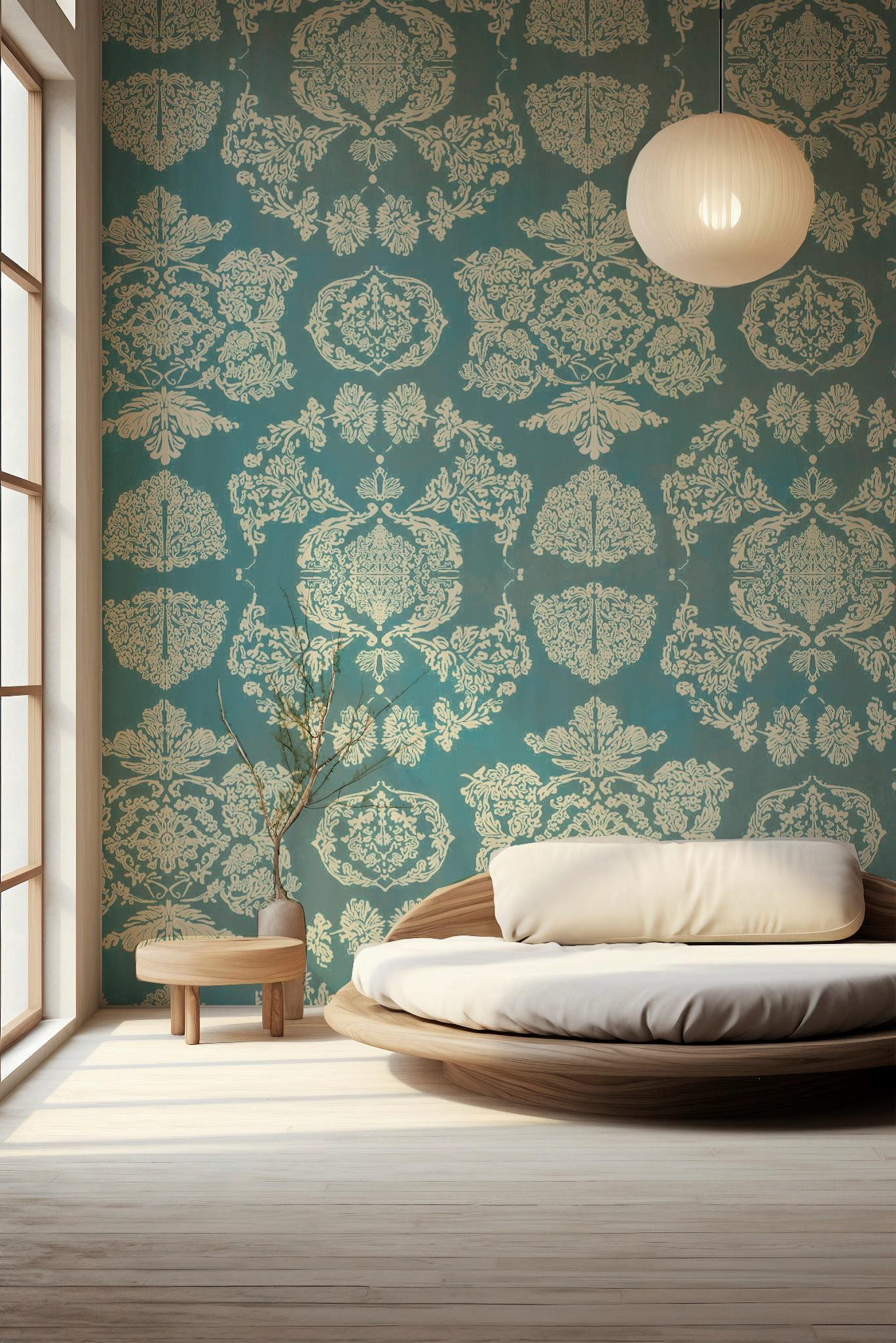 In my Mia Luna patterns, for example, a softly toned, ornamented wallpaper can sit beautifully within a streamlined, contemporary interior. The traditional backdrop adds richness, while modern furnishings keep the space fresh and adaptable.